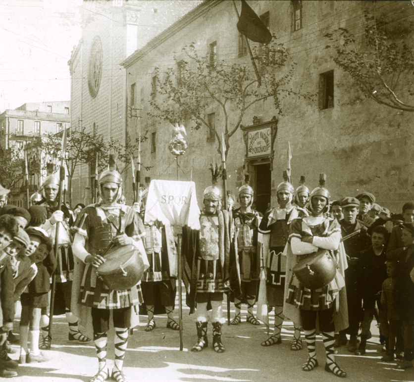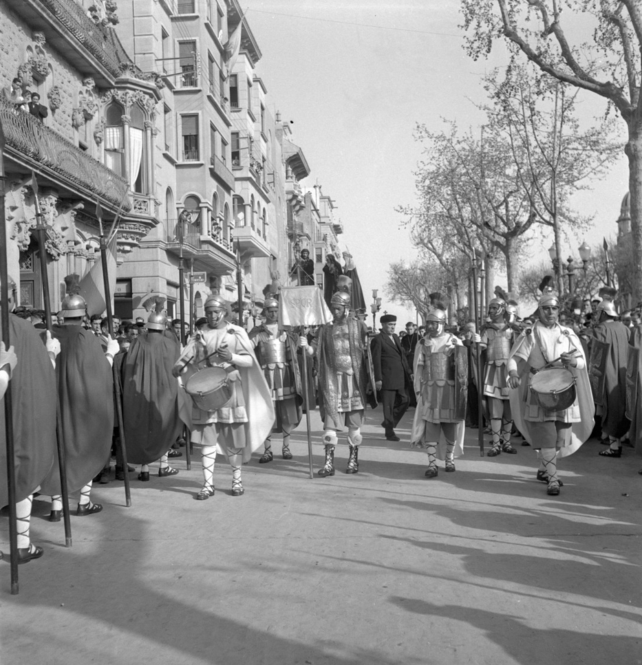 La primera referència escrita que tenim de la presència d’un grup de soldats romans a la Processó del Sant Enterrament –que en aquella època es celebrava el Dijous Sant- correspon a l’acta de Junta de la Congregació del 19 de febrer de 1758.